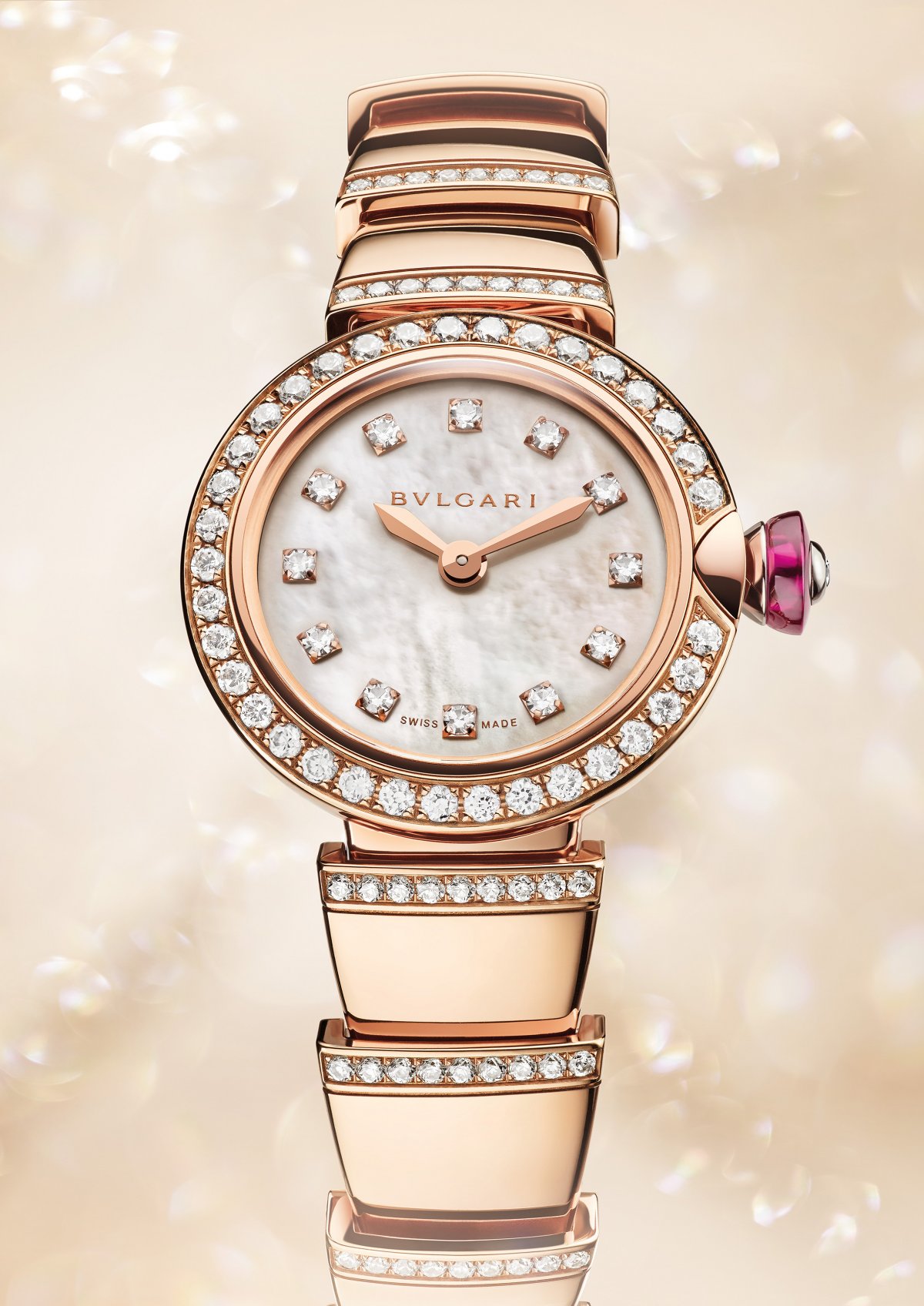 Piccola Lucea: a dainty diameter. Lucea also proves itself capable of renewal by playing with the case size. The Rome-based Maison thus offers active women an appealing new model named Piccola Lucea. This new version has been redesigned in a daintier diameter providing a very contemporary response to the growing demand for ever-smaller ladies’ watches. Like all Bulgari creations, this timepiece designed for daily wear is also at home in its evening role as jewellery.